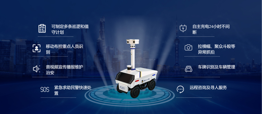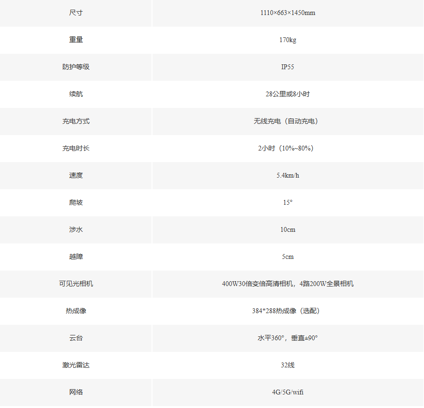 采用高速4WID-4WIS底盘,四轮独立驱动和转向,独立悬挂结构,适用于各类城市及乡村环境,具有强大的越障和爬坡能力,可选配非暴力拒止装备、无人机机巢、无人机反制装备和户外大屏。
