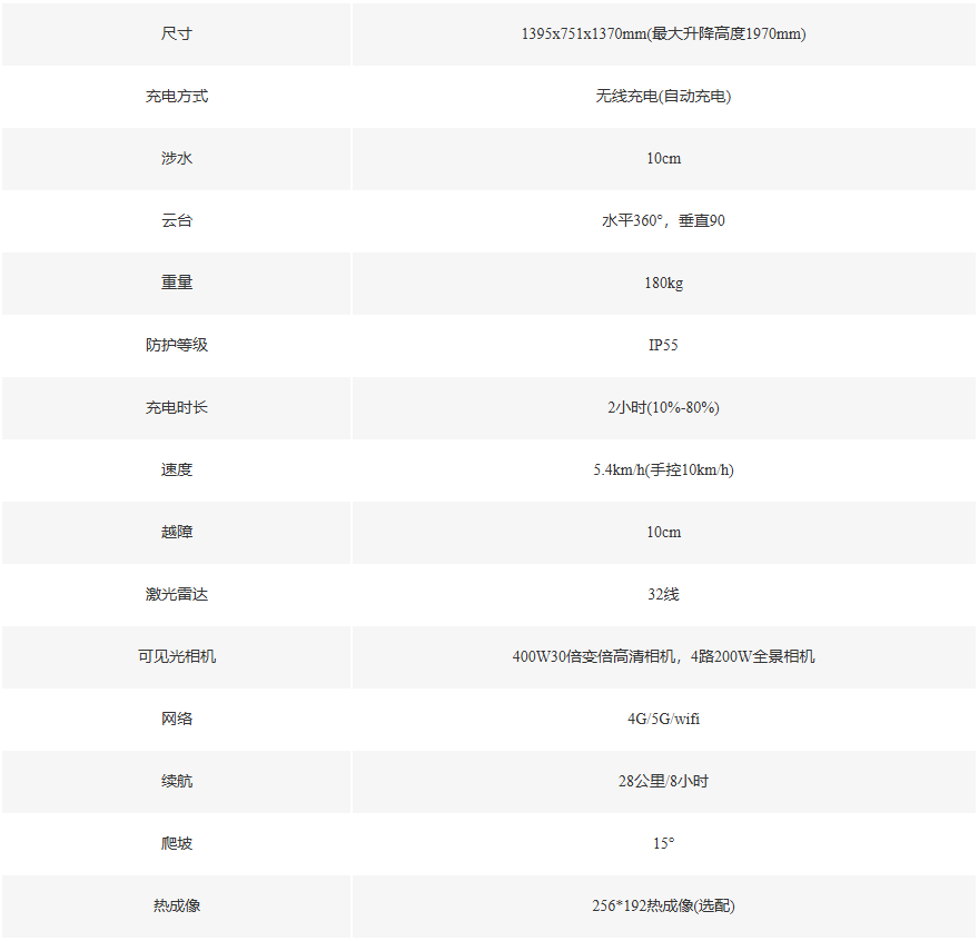 适用于中大型广场、大型公园、边境、周界巡逻等,具有越野式底盘,大行程悬挂系统,可运行于各类非铺装路面。