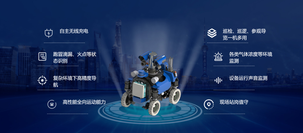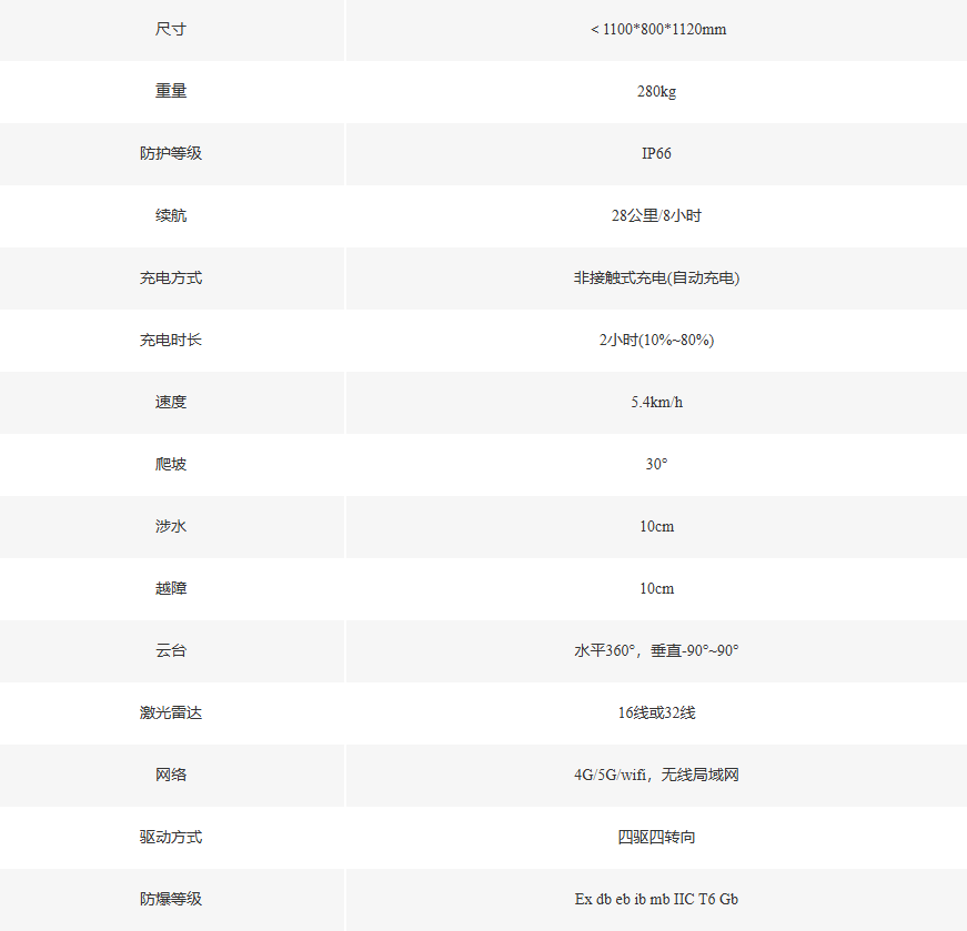 面向化工行业设计,具备IIC T6防爆等级,适用于1区、2区危险场所,IIA、IIB、IIC类爆炸性气体环境。该款机器人可应对各种复杂路况,同时实现设备缺陷自动诊断、环境设施智能运维、生产安全、隐患排查等功能。